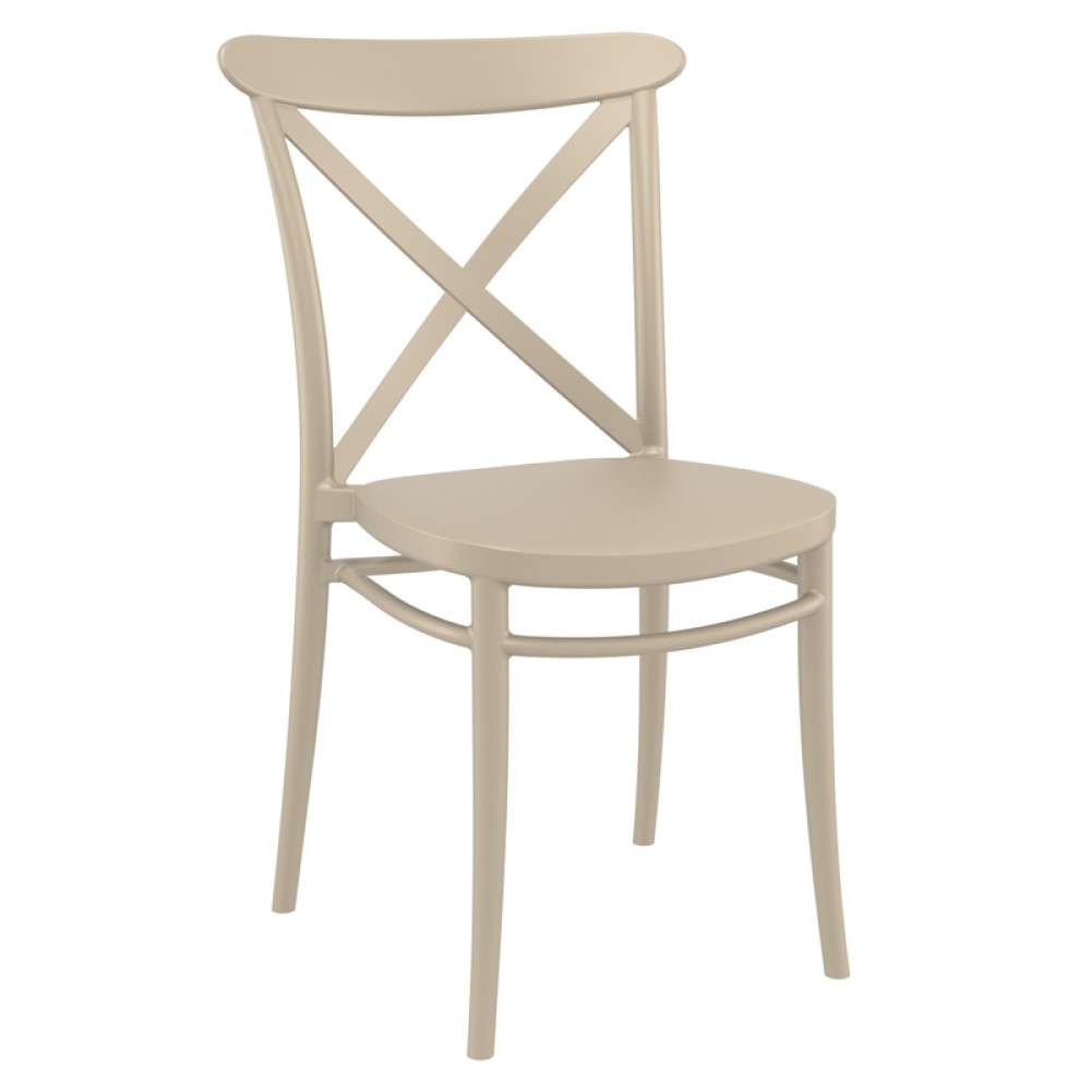 Καρέκλα CROSS του οίκου Siesta σε taupe χρώμα, με design υψηλής αισθητικής. Κατασκευασμένη από πολυπροπυλένιο με 20% fiber glass για απόλυτη αντοχή στον χρόνο. Κατάλληλη για εσωτερική και εξωτερική χρήση, στοιβαζόμενη,ιδανική επιλογή και για επαγγελματικούς χώρους.Πιστοποιημένο προϊόν από τον Ιταλικό οίκο CATAS.