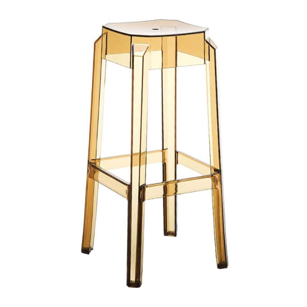 Σκαμπό BAR FOX 75 του οίκου SIESTA σε χρώμα AMBER TRANSPARENT.Κατασκευασμένο από διάφανο πολυκαρμπονικό της Makrolon.Κατάλληλο για εσωτερική και εξωτερική χρήση.Διαθέτει UV-resistant.Πιστοποιημένο προιόν από τον Ιταλικό οίκο CATAS.