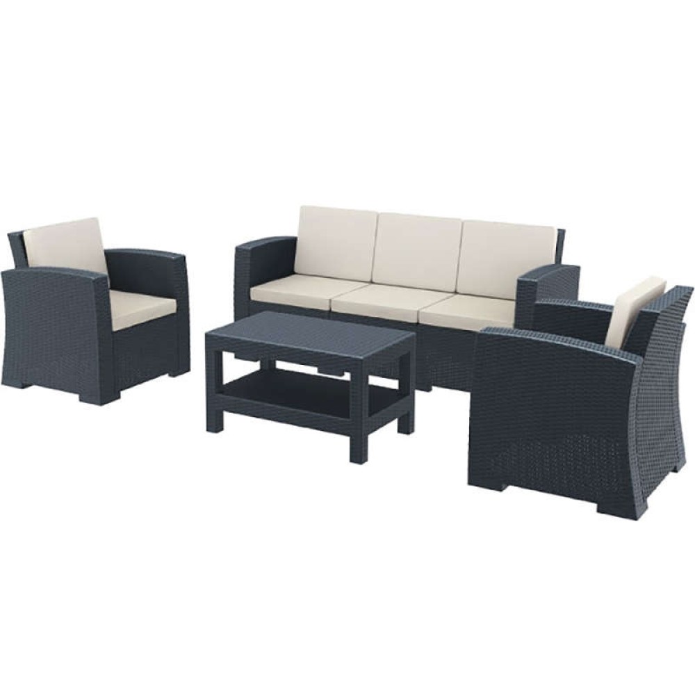 Monaco set K/D του οίκου Siesta, σε χρώμα dark grey. Το SET περιλαμβάνει 1 3θέσιο καναπέ, 2 πολυθρόνες, τραπέζι και μαξιλάρια. Από υψηλής ποιότητας πολυπροπυλένιο με ενίσχυση από υαλώδεις ίνες (fiber glass) για απόλυτη αντοχή. Χωρίς μεταλλικό σκελετό για μεγαλύτερη αξιοπιστία στον χρόνο. Διαθέτει UV protection για μέγιστη προστασία από τον ήλιο ώστε να μην αλλοιωθούν τα χρώματα. Κατάλληλο για εσωτερική και εξωτερική χρήση. Πιστοποιημένο προϊόν από τον Ιταλικό οίκο CATAS.