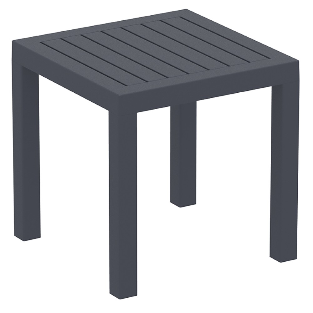 Τραπέζι OCEAN 45X45X45 του οίκου Siesta σε χρώμα dark grey,κατασκευασμένο από πολυπροπυλένιο για απόλυτη αντοχή.Έχει UV προστασία για τις ακτίνες του ηλίου,δεν περιέχει μεταλλικά στοιχεία στον σκελετό, ώστε να μην υπάρξει πρόβλημα οξείδωσης.Κατάλληλο για εσωτερική και εξωτερική χρήση.