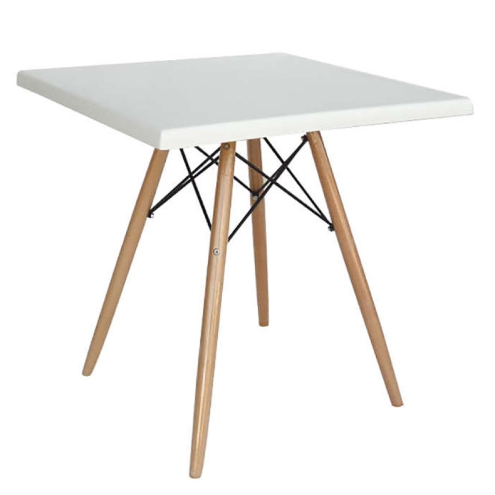 Randy werzalit τραπέζι με ξύλινα πόδια και μέταλλο και επιφάνεια werzalit 70Χ70 σε χρώμα λευκό. Ένα εντυπωσιακό τραπέζι όπου χάρη του σχεδιασμού και το χρώμα του ικανοποιεί όλα τα γούστα. Μπορεί να συνδυαστεί με όλες τις καρέκλες design και είναι ιδανικό για μικρούς χώρους.