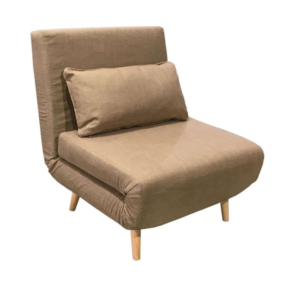 Sara πολυθρόνα με ύφασμα χρώματος brown και διακοσμητικό μαξιλάρι για επιπλέον άνεση.Το ύφασμα σε brown απόχρωση την καθιστά διαχρονική και ευέλικτη, ώστε να ταιριάζει εύκολα σε κάθε διακόσμηση, από minimal μέχρι πιο κλασική.Με τον πρακτικό της μηχανισμό, ανοίγοντας τα πόδια μετατρέπεται εύκολα σε κρεβάτι,προσφέροντας άνεση και λειτουργικότητα.