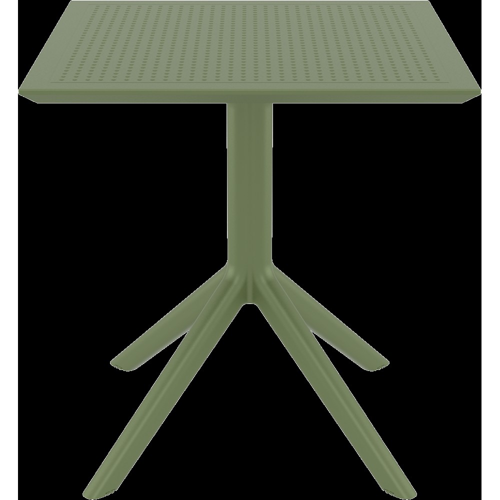SKY τραπέζι 70Χ70 του οίκου Siesta σε χρώμα olive green.Κατασκευασμένο από πολυπροπυλένιο.Διαθέτει UV protection για μη αλλοίωση των χρωμάτων.Κατάλληλο για εσωτερική και εξωτερική χρήση.