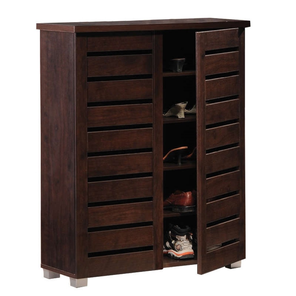 Παπουτσοθήκη μελαμίνης με 2 ανοιγόμενες πόρτες με γρίλιες σε χρώμα wenge και 4 ράφια για να αποθηκεύετε τα παπούτσια σας.Με όμορφο σχεδιασμό για να δημιουργήσετε μια όμορφη μεριά στον χώρο σας και να εξοικονομήσετε χώρο.