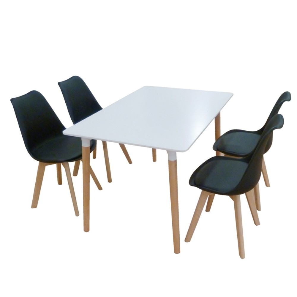Set τραπεζαρίας εσωτερικού χώρου Logan. Το set αποτελείται απο 1 τραπέζι Randy σε διάσταση 120Χ80Χ72εκ. σε λευκό χρώμα και 4 καθίσματα Logan Plus σε μαύρο χρώμα. Ένα μοντέρνο Set ιδανικό για την τραπέζαρια ή την κουζίνα σας.