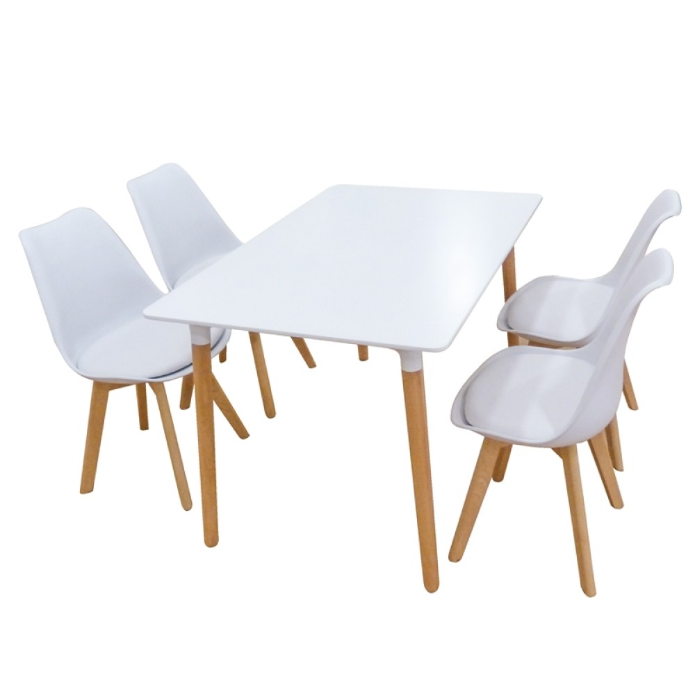 Set τραπεζαρίας εσωτερικού χώρου Logan. Το set αποτελείται απο 1 τραπέζι Randy σε διάσταση 120Χ80Χ72εκ. σε λευκό χρώμα και 4 καθίσματα Logan Plus σε white χρώμα. Ένα μοντέρνο Set ιδανικό για την τραπέζαρια ή την κουζίνα σας.
