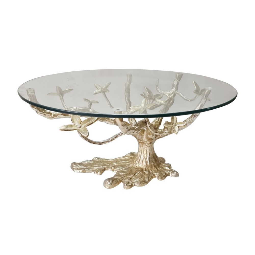 Χρυσό Μεταλλικό Τραπέζι Σαλονιού με Γυαλί