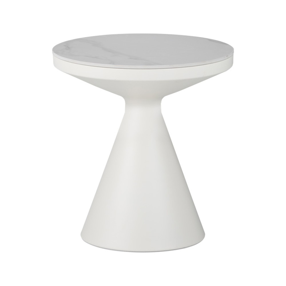 Βοηθητικό τραπέζι Coozlin Inart sintered stone σε απόχρωση λευκό μαρμάρου με λευκό μέταλλο Φ50x50εκ