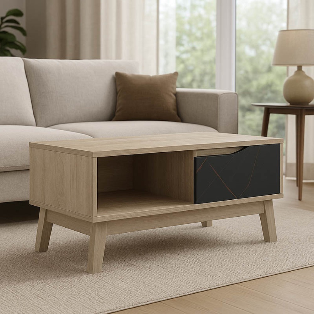 Τραπέζι σαλονιού Judas pakoworld σε μαύρο μαρμάρου-sonoma απόχρωση 90x45x38.5εκ