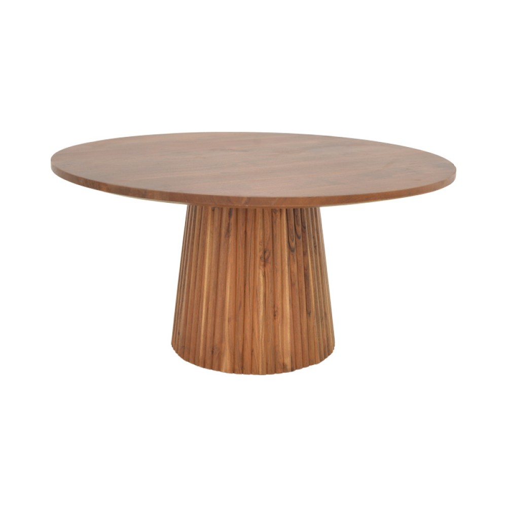 Τραπέζι σαλονιού Canicule ΙI pakoworld μασίφ ξύλο ακακίας σε καρυδί απόχρωση Φ80x40εκ