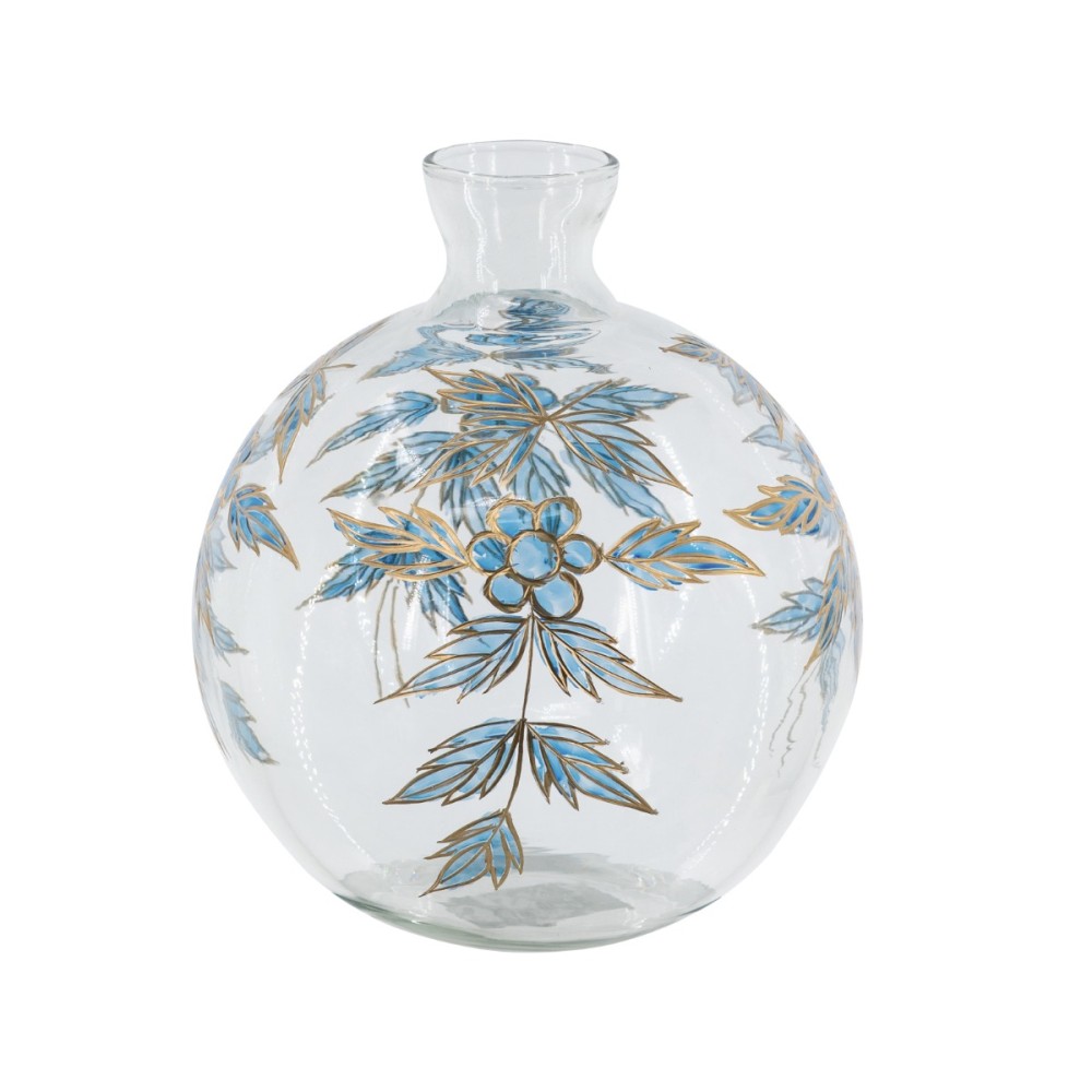 Artekko Διάφανο Γυάλινο Βάζο Διακοσμημένο με Μπλε Λουλούδια
