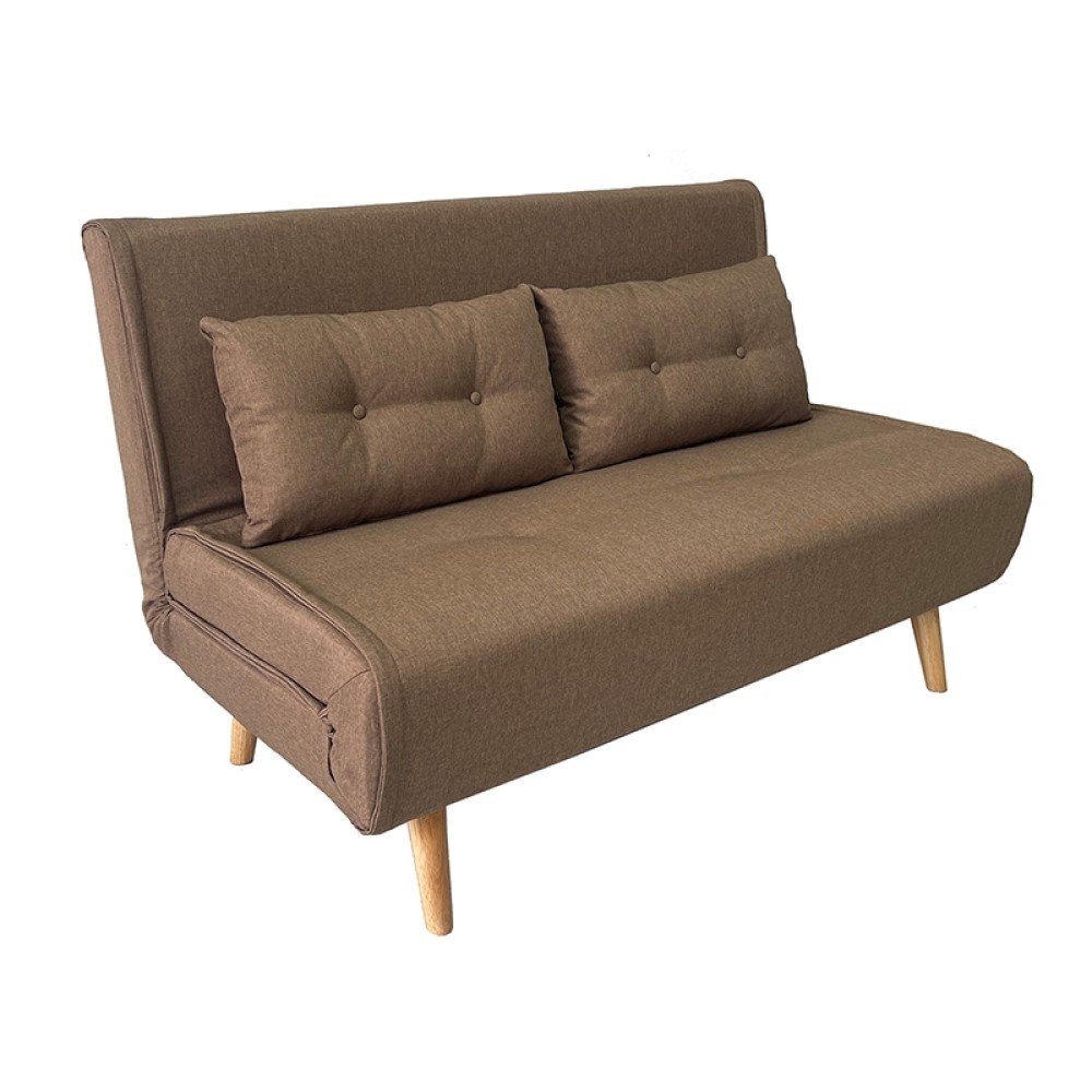 Sara καναπές με ύφασμα χρώματος brown και διακοσμητικά μαξιλάρια. Ένας μοντέρνος και καλαίσθητος καναπές, με εύκολο στη χρήση μηχανισμό για τη μετατροπή του σε κρεβάτι ανοίγοντας τα φερμουάρ που υπάρχουν στην κάτω πλευρά του. Ξεδιπλώνοντας τα πτυσσόμενα ποδαράκια, έχετε στη στιγμή ένα επιπλέον βοηθητικό κρεβάτι στο χώρο σας. Μπορείτε να τον συνδυάσετε υπέροχα με την πολυθρόνα Sara για στο σαλόνι σας.