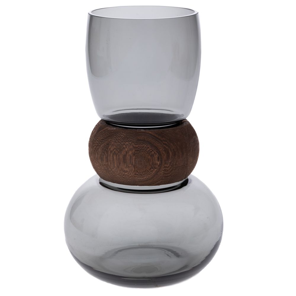 ΓΚΡΙ ΓΥΑΛΙΝΟ ΒΑΖΟ ΜΕ ΞΥΛΙΝΗ ΛΕΠΤΟΜΕΡΕΙΑ 16Χ26ΕΚ