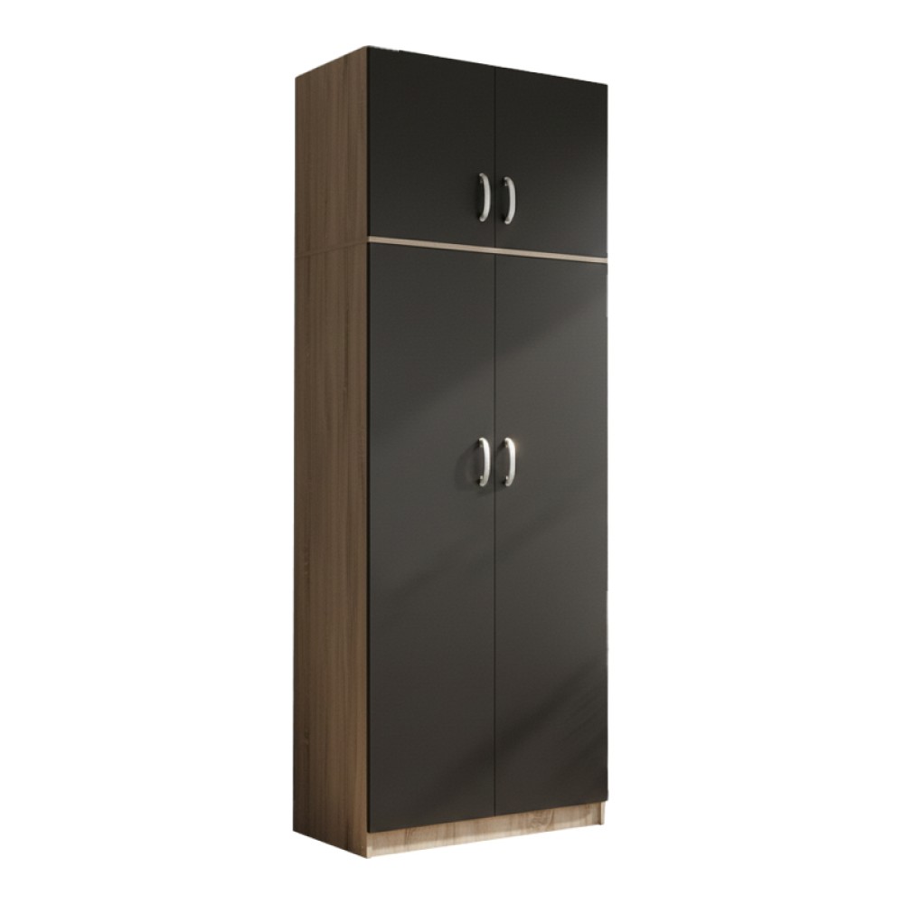 Ντουλάπα δίφυλλη και πατάρι Athos pakoworld σε sonoma-ανθρακί απόχρωση 80x42x240εκ