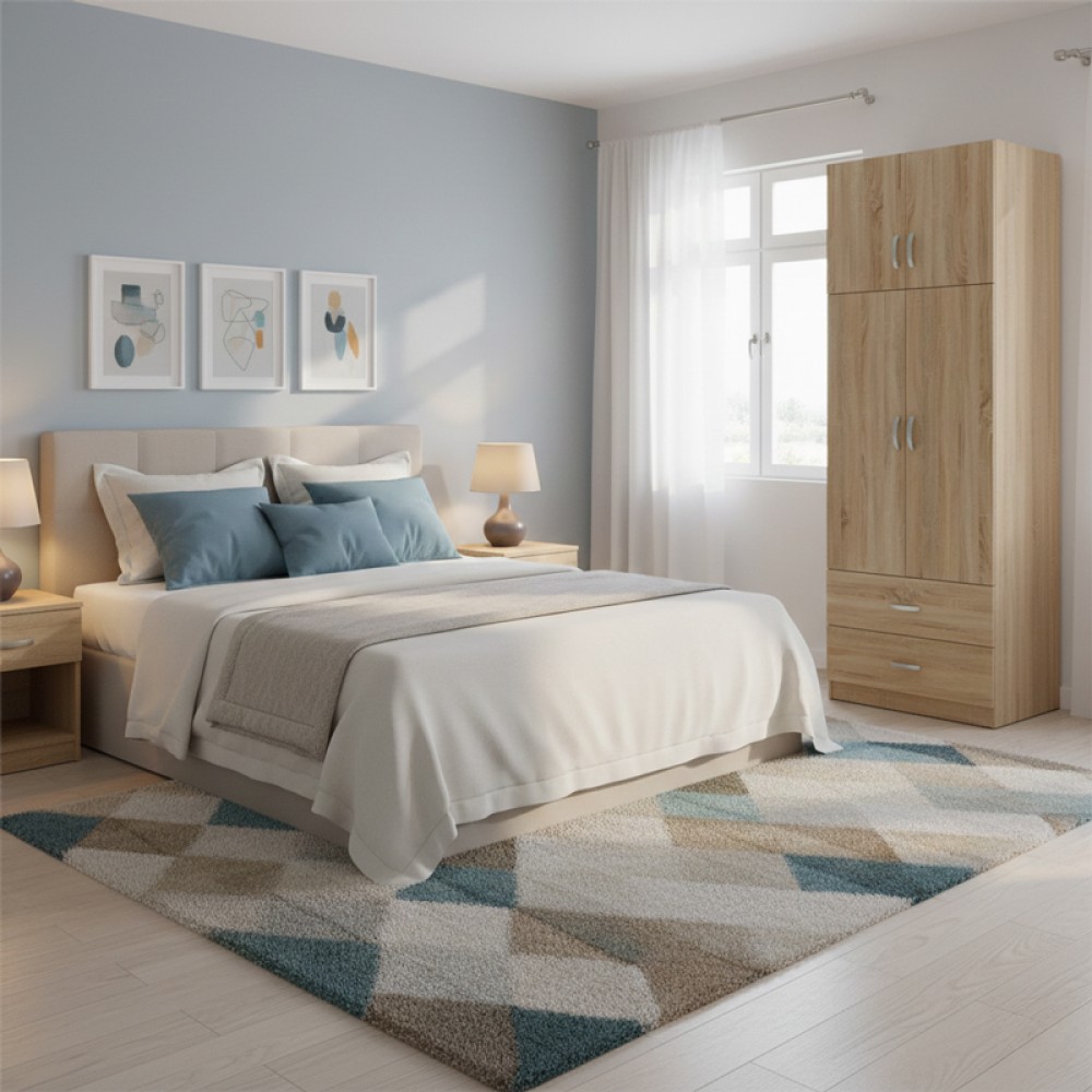 Ντουλάπα δίφυλλη με 2 συρτάρια και πατάρι Athos pakoworld σε oak απόχρωση 80x42x240εκ