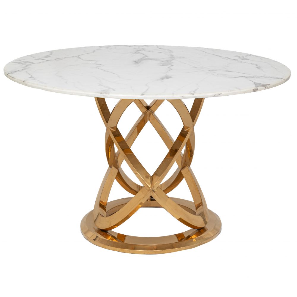 ΤΡΑΠΕΖΙ ΡΟΤΟΝΤΑ Φ130Χ75ΕΚ ΧΡΥΣΟ ΜΕΤΑΛΛΙΚΟ ΜΕ ΛΕΥΚΗ ΜΑΡΜΑΡΙΝΗ ΕΠΙΦΑΝΕΙΑ