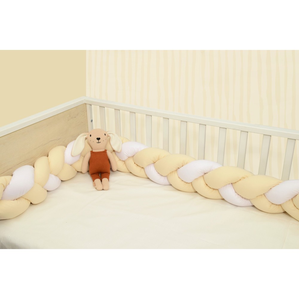 Πλεξούδα προστασίας κρεβατιού - Εξωτερικό ύφασμα ζακάρ ζέρσευ 100% βαμβάκι με πιστοποίηση Oekotex - εσωτερικό 100% σιλικονούχος πολυέστερας. Διάσταση περίπου: 20Χ200CM. Πλύσιμο στο χέρι. Συσκευασία σε σακούλα PVC με φερμούαρ. Ελληνικής Ραφής.
