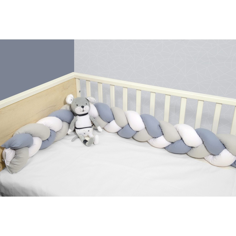 Πλεξούδα προστασίας κρεβατιού - Εξωτερικό ύφασμα ζακάρ ζέρσευ 100% βαμβάκι με πιστοποίηση Oekotex - εσωτερικό 100% σιλικονούχος πολυέστερας. Διάσταση περίπου: 20Χ200CM. Πλύσιμο στο χέρι. Συσκευασία σε σακούλα PVC με φερμούαρ. Ελληνικής Ραφής.