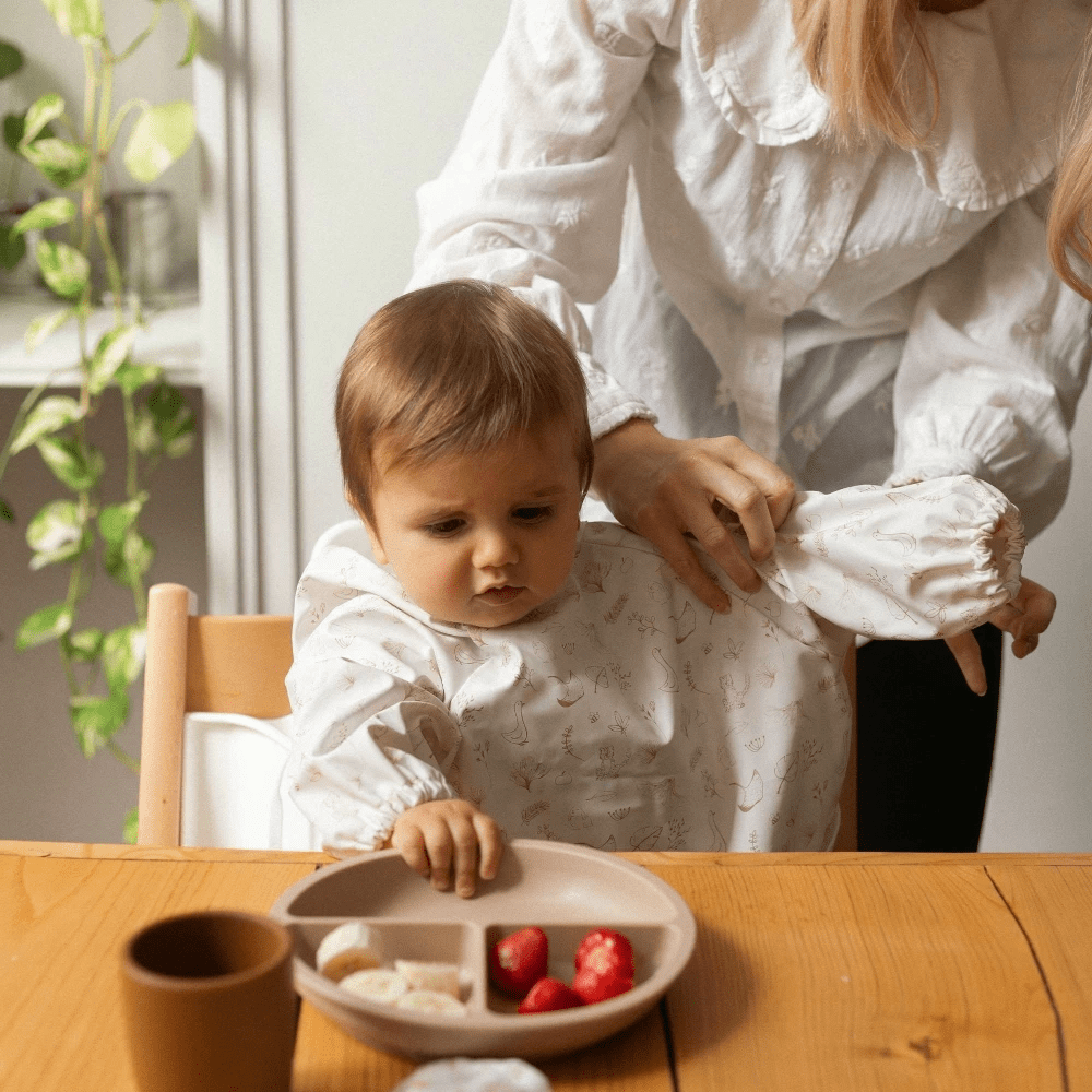 Το ιδανικό αξεσουάρ για να μπορείτε να προσφέρετε ένα ευχάριστο και ασφαλές γεύμα, χωρίς φόβο για λεκέδες, καθώς το αδιάβροχο ύφασμα της σαλιάρας, αλλά και τα μακριά μανίκια της που εφαρμόζουν πλήρως στα χέρια με λάστιχα, κρατάει όλα τα υπολείμματα του φαγητού μακριά από τα ρούχα και το δέρμα του μωρού σας.