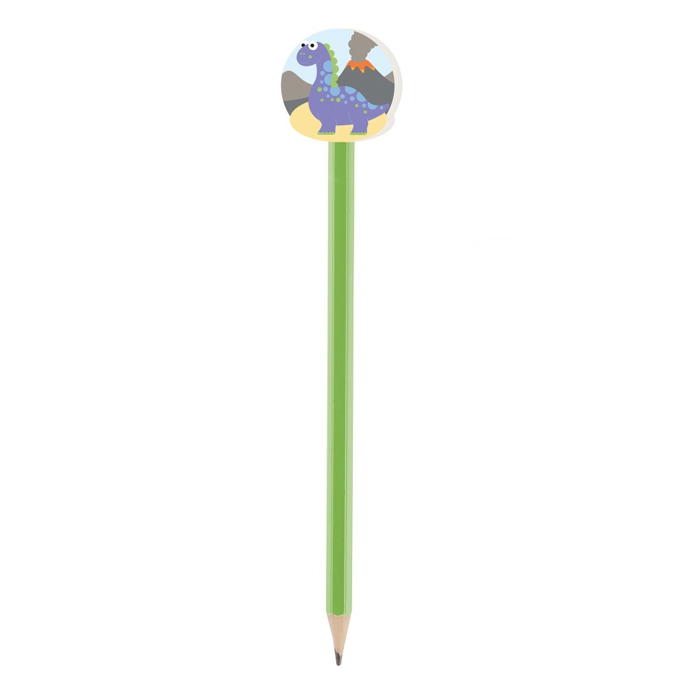 Ένα χαριτωμένο μολύβι με μια εικόνα δεινόσαυρου στο πάνω μέρος. Τα ξύλινα προϊόντα της Orange Tree κατασκευάζονται από φιλικά προς το περιβάλλον υλικά και δεν περιέχουν πλαστικά.