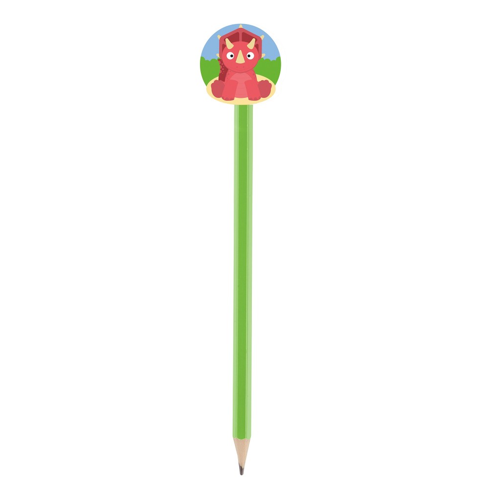 Ένα χαριτωμένο μολύβι με μια εικόνα δεινόσαυρου στο πάνω μέρος.