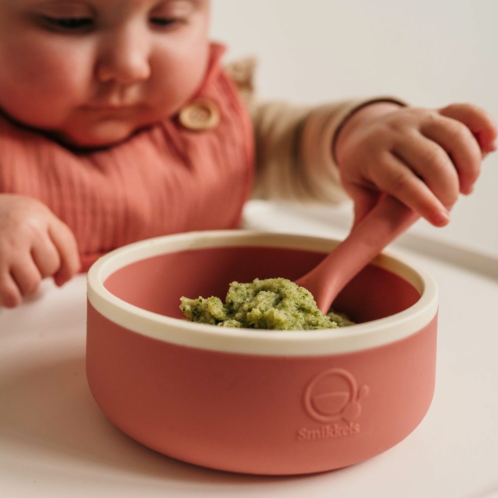 Το παιδικό μπωλ σιλικόνης της Smikkels είναι ιδανικό για όλα τα μωρά που αρχίζουν να τρώνε ανεξάρτητα. Τα παιδικά επιτραπέζια σκεύη από σιλικόνη είναι απαλά και φιλικά προς τα χέρια, ενώ είναι άθραυστα και παρέχουν σταθερό κράτημα. Απολαύστε ένα νόστιμο σνακ από το δικό σας μπολ! Η σιλικόνη αποτελεί ένα πολύ αντιολισθητικό υλικό, έτσι ώστε να μην γλιστράει από το τραπέζι και τα χέρια κατά τη διάρκεια του φαγητού. Το μπολ είναι κατάλληλο τόσο για ζεστό όσο και για κρύο φαγητό. Είναι άθραυστο, ανθεκτικό, χωρίς BPA και ασφαλές για καθάρισμα στο πλυντήριο πιάτων. Το μπολ μπορεί επίσης να χρησιμοποιηθεί και στο φούρνο μικροκυμάτων, αλλά και στην κατάψυξη. Πριν χρησιμοποιήσετε το παιδικό μπολ σιλικόνης για πρώτη φορά, πλύντε το με σαπουνόνερο στο χέρι ή στο πλυντήριο πιάτων. Υλικό κατασκευής: 100% σιλικόνη.