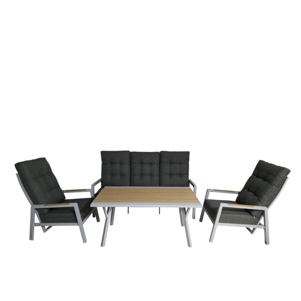 Artekko Alu Γκρι Σετ Αλουμινίου με Τριθέσιο Καναπέ 2 Ανακλινόμενες Πολυθρόνες και Τραπέζι (4 Τεμάχια)