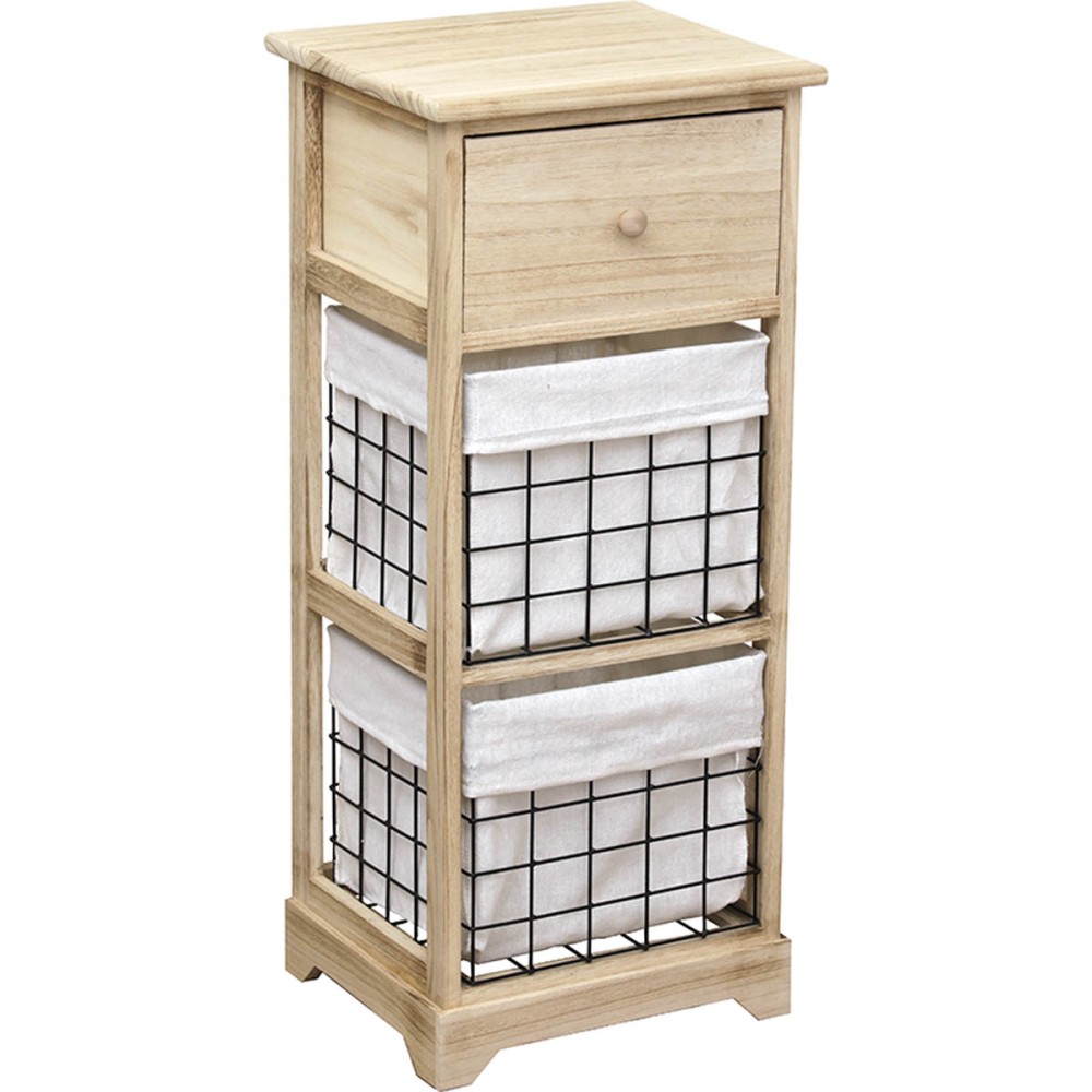 Έπιπλο με 1 Συρτάρι και 2 Μεταλλικά Καλάθια με Λευκό Ύφασμα (Καφέ/Λευκό)