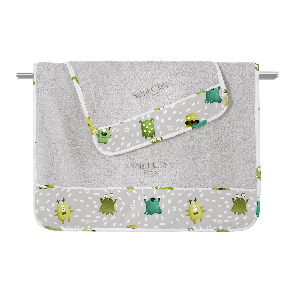 Σετ 2τμχ. βρεφικές πετσέτες κατασκευασμένες από 100% βαμβάκι. Το σετ αποτελείται από μία πετσέτα 40x60εκ. και μία 70x130εκ. Αναλύψτε όλη την σειρά Monsters Lime και ολοκληρώστε την προίκα του μωρού σας.