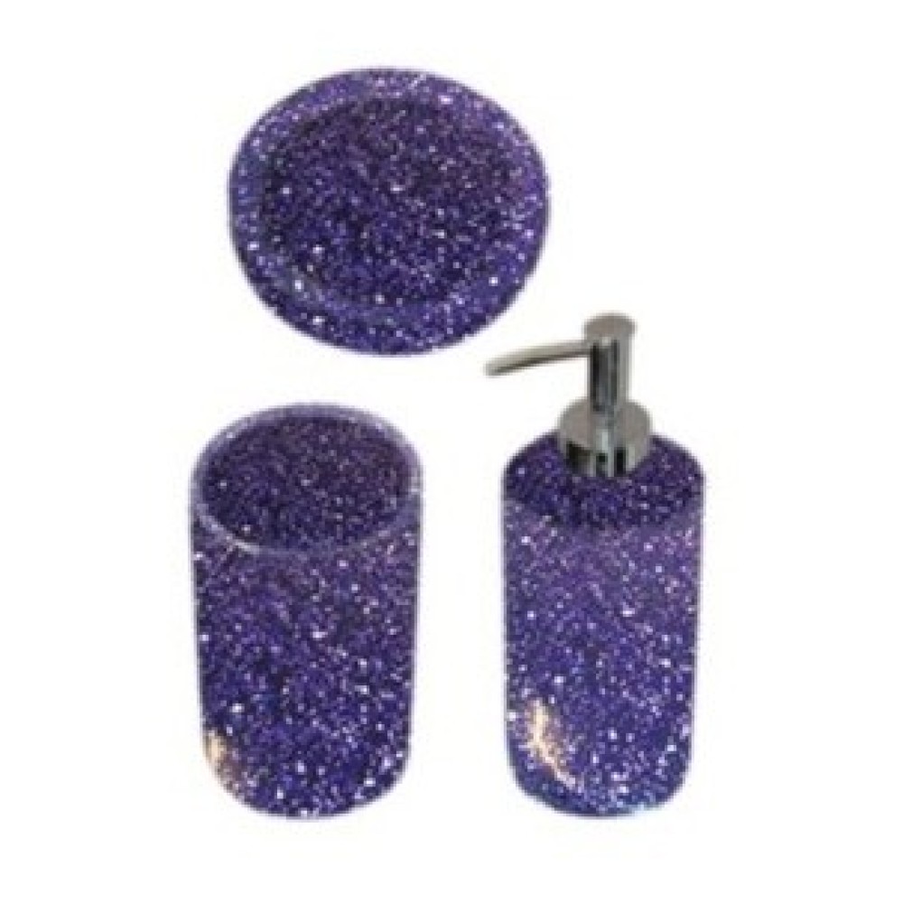 Σετ dispenser, ποτηροθήκη και σαπουνοθήκη μωβ με πιτσιλιά
