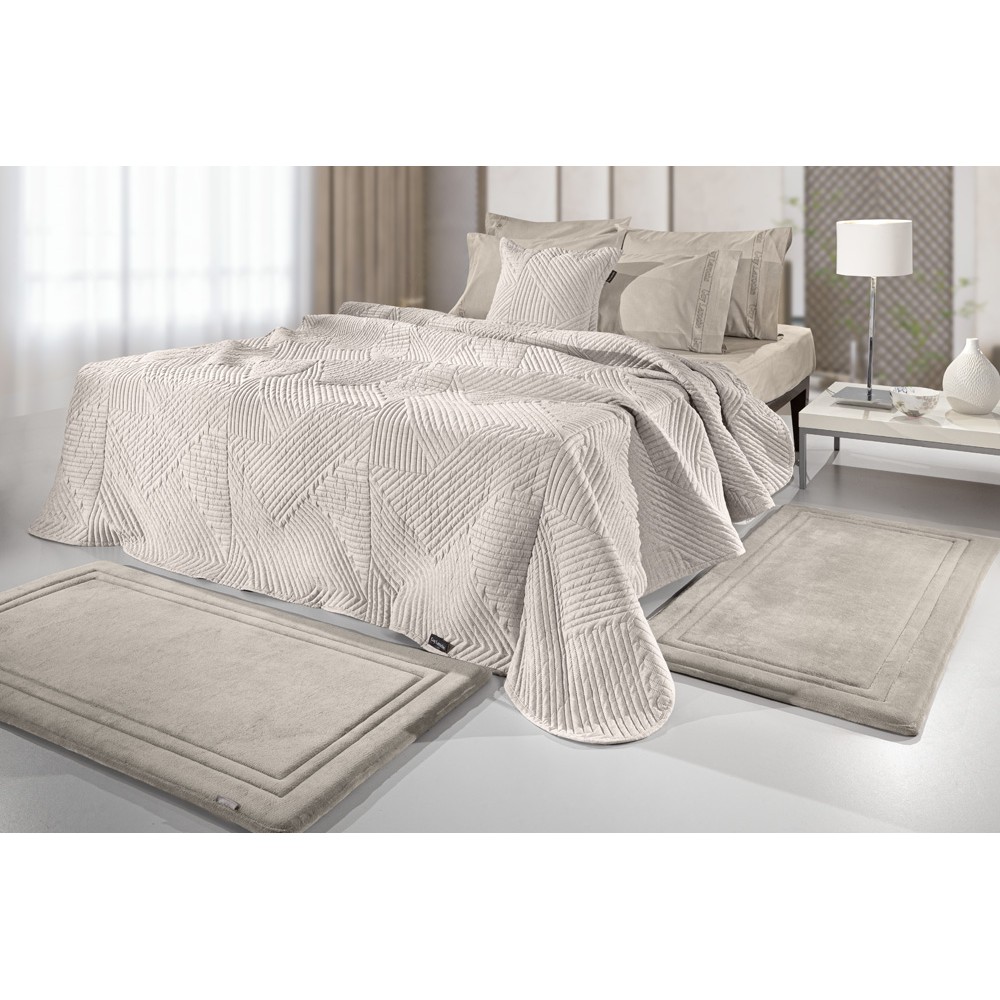 Σετ χαλιά κρεβατοκάμαρας από την εταιρεία Guy Laroche Paris σε μεγάλη ποικιλία χρωμάτων. Είναι κατασκευασμένα από memory foam με σύνθεση 100% μικροΐνες. Το υλικό αυτό προσφέρει απαλό και σταθερό πάτημα, καθώς το χαλί παίρνει το σχήμα του πέλματος και μετά επανέρχεται πάλι στη θέση του. Το σετ αποτελείται από δύο χαλάκια 60x120εκ. κα ένα χαλάκι 60x180εκ.