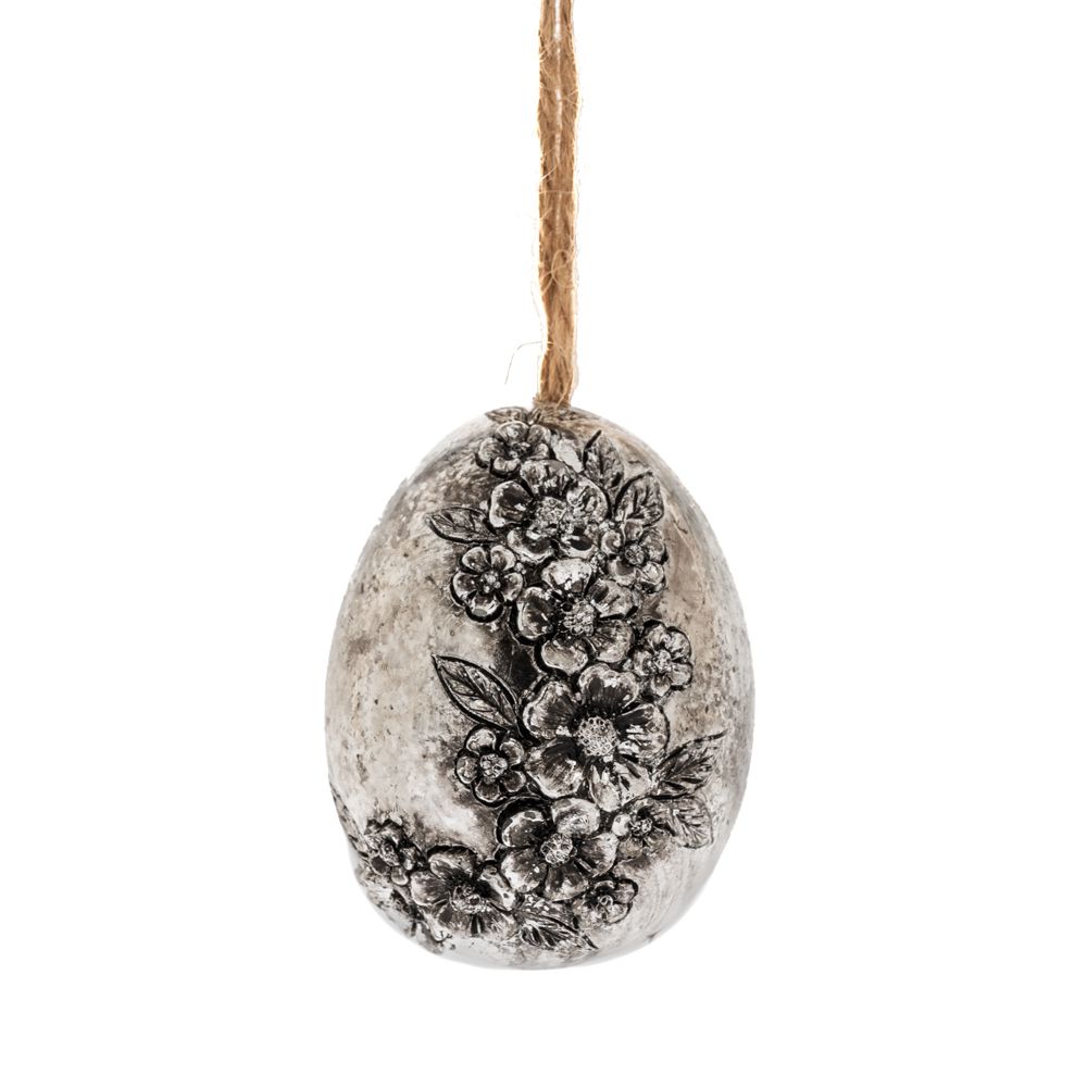 Αυγό ασημί 5χ7εκ.πολυρέζιν με σχέδιο κρεμαστό.