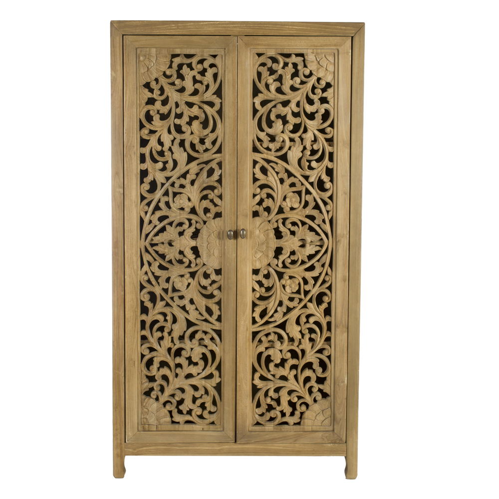 Artekko Mandala Σκαλιστή Ξύλινη Ντουλάπα σε Φυσική Απόχρωση (100x53x185)cm - 100cm x 53cm x 185cm