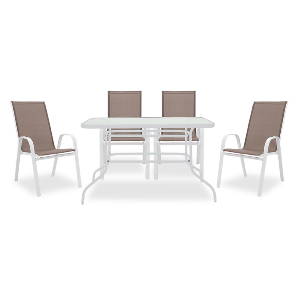 Τραπεζαρία Ensure-Calan I σετ 5τεμ pakoworld μέταλλο λευκό-καφέ textilene 120x70x70εκ