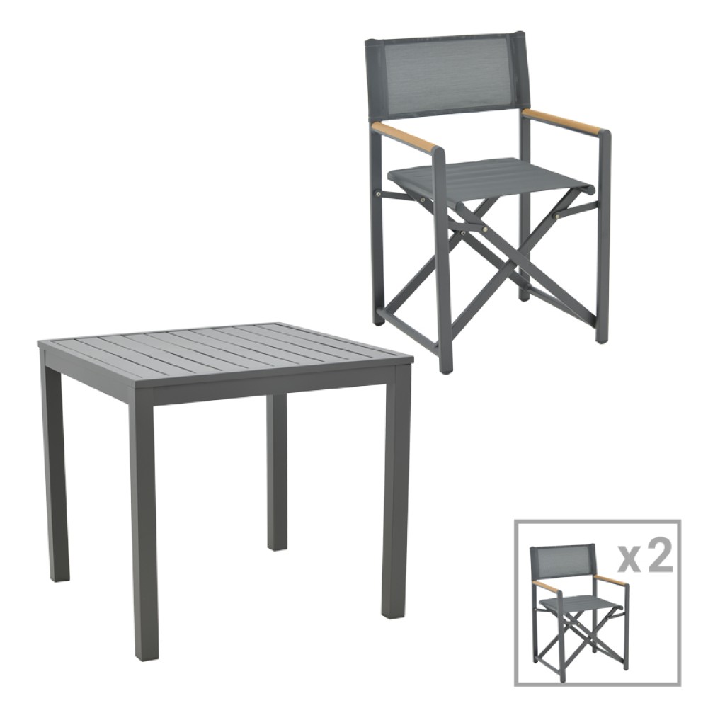 Τραπεζαρία Kliton-Mabu σετ 3τεμ pakoworld αλουμίνιο σε ανθρακί απόχρωση 80x80x74εκ