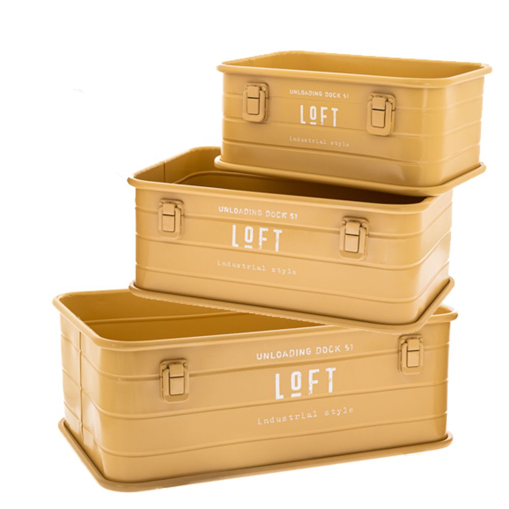 Κουτί σετ3 κίτρινο μεταλλικό παρ/μο 46χ31χ19 39χ26χ17 32χ21χ15εκ. διαφόρων χρήσεων.