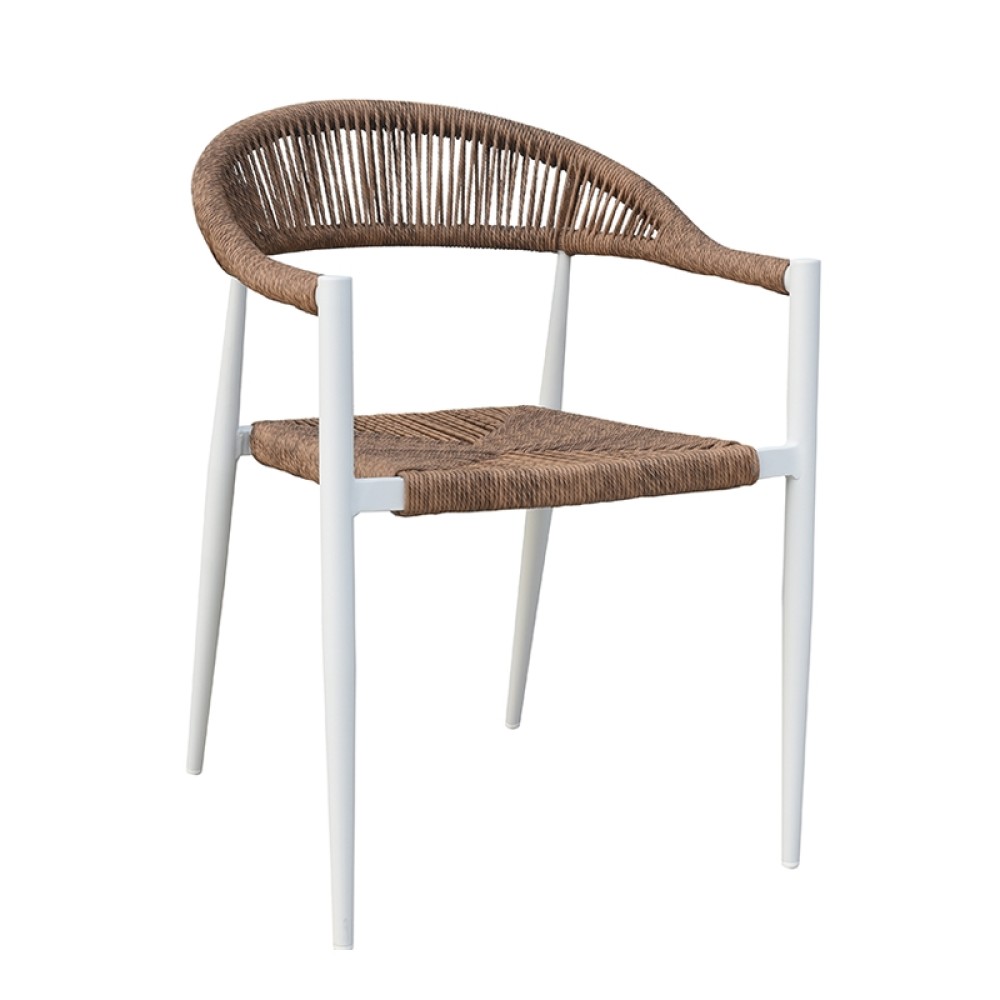 Valeria πολυθρόνα αλουμινίου με σκελετό βαφής σε χρώμα white με μοντέρνο design.Η πλάτη και το κάθισμα είναι με επένδυση από συνθετικό σχοινί σε χρώμα natural. Με στρογγυλεμένη πλάτη για μεγαλύτερη άνεση. Είναι στοιβαζόμενη για εύκολη αποθήκευση και κατάλληλη για εξωτερική χρήση.