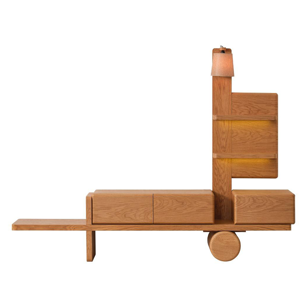Artekko Lilyum Καφέ Ξύλινο Έπιπλο Τηλεόρασης με Ενσωματωμένο Φωτιστικό (240x48x57/160)cm - 240cm x 48cm x 160cm