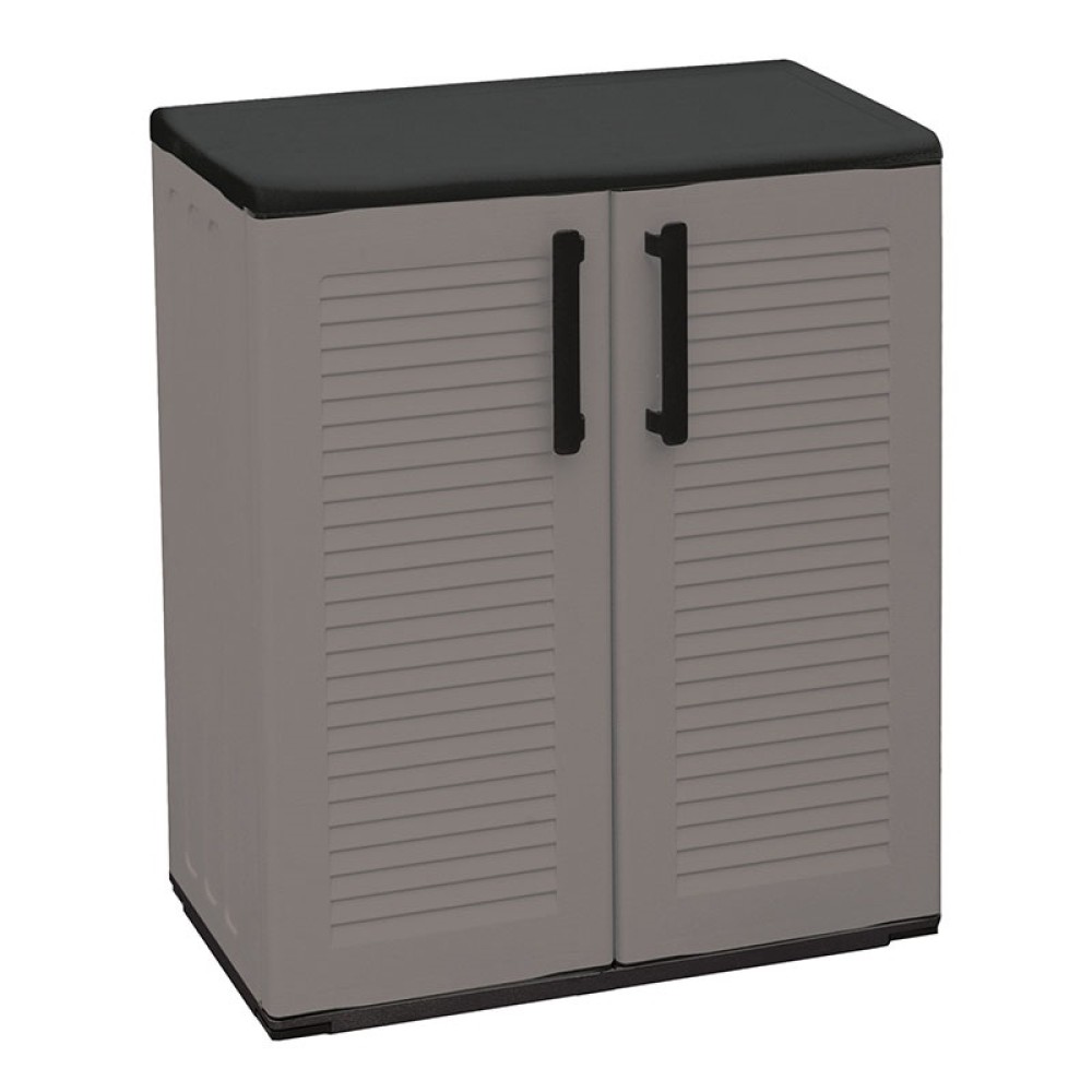 Ντουλάπα πλαστική δίφυλλη για εξωτερικούς χώρους. Ανθεκτική σε καιρικές συνθήκες χάρη στην επάνω επιφάνεια της ντουλάπας που καλύπτει τα φύλλα προστατεύοντάς το περιεχόμενο της. Διαθέτει ανοιγόμενα φύλλα και 1 εσωτερικό ράφι για αποθήκευση μικρών και μεγάλων αντικειμένων όπως οικιακές συσκευές, εργαλεία κλπ.