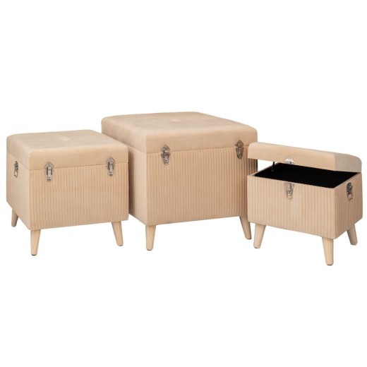 Σκαμπό-μπαούλο Koper pakoworld βελούδο σε μπεζ απόχρωση 76x38x38εκ