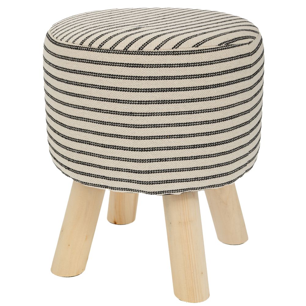 Σκαμπώ υφασμάτινο με ξύλινα πόδια 33χ48εκ με ρίγες. Το ύφασμα είναι 50% Βαμβακερό 50% Πολυεστέρας.