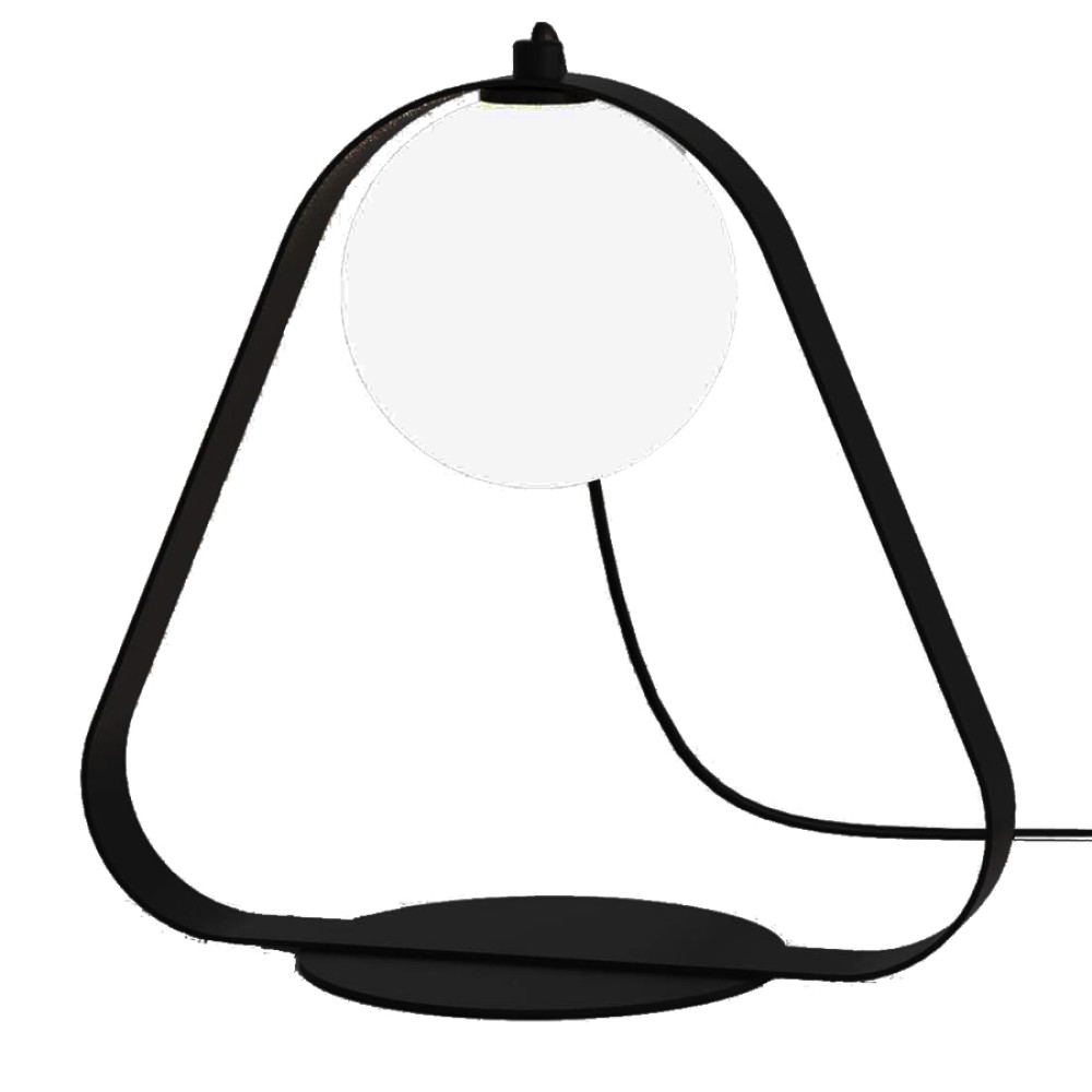 Επιτραπέζιο πορτατίφ σε τρίγωνο σχήμα κατασκευασμένο από μέταλλο σε μαύρο χρώμα με λευκή οπαλίνα.
