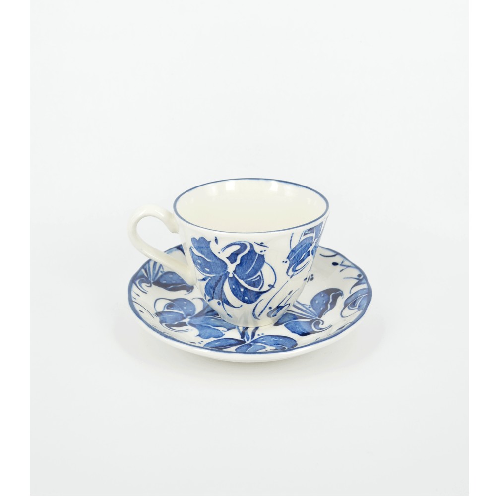 Αγγλικό φλυτζάνι φαγιάνς απαράμιλλης ποιότητας λευκό με μπλε ορχιδέες που συνδυάζετε όμορφα με τα κομποζέ του (πιάτα, κούπα, γαλατιέρα - ζαχαριέρα, κτλ). Καταπληκτική σειρά από 20ετίας σερβίτσιο Royal Tudor. Our best seller!