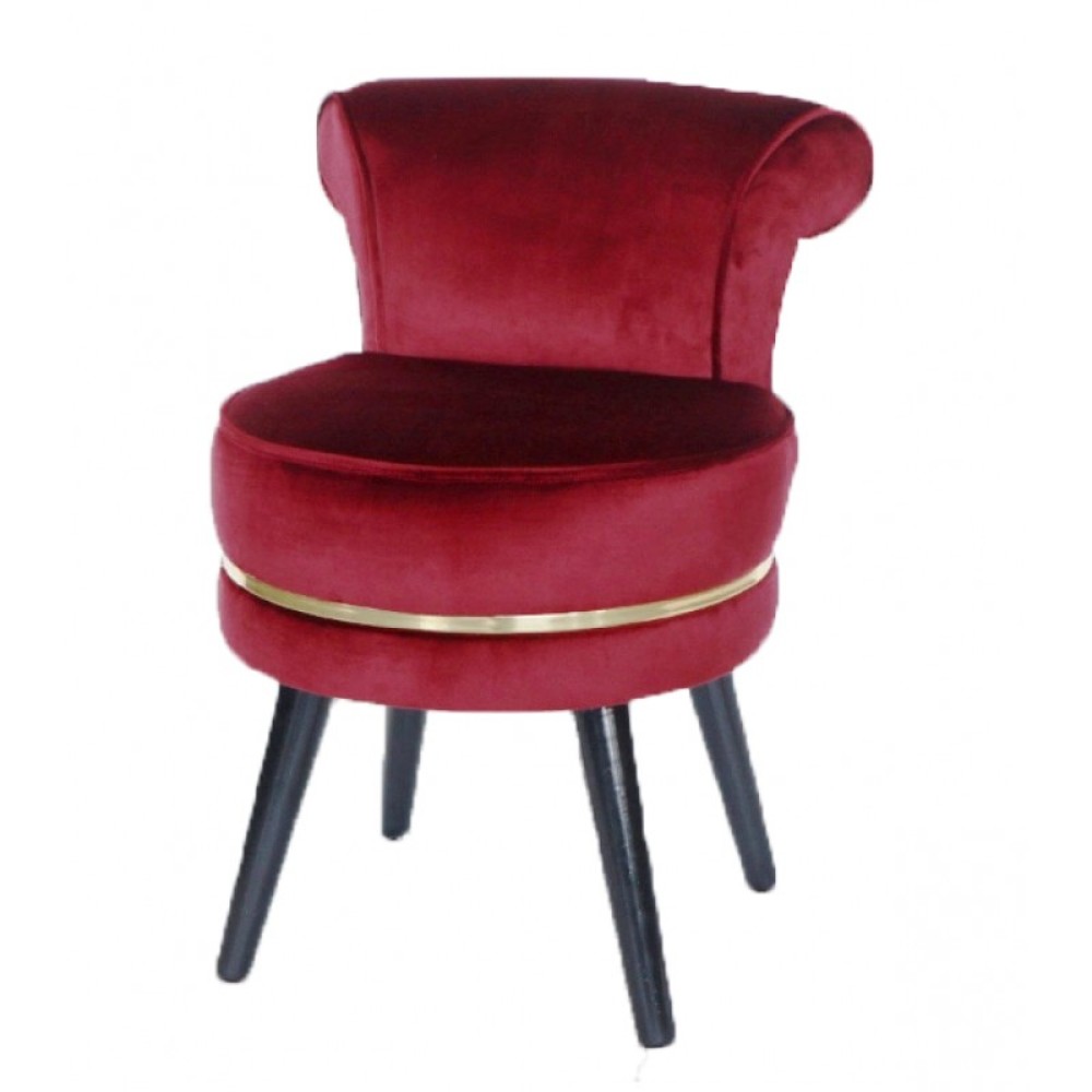 Πολυθρονάκι Με Ξύλινα Πόδια Χρώματος Μπορντό Με Βελούδινο Ύφασμα Και Χρυσή Ρίγα