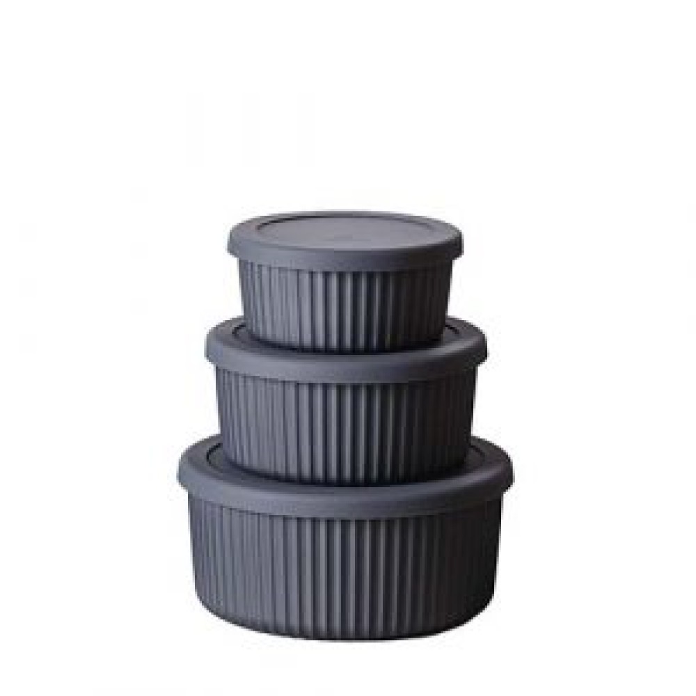 Σετ φαγητοδοχείων PLA 7 x 15,5cm, 6x14cm, 5x12 cm. Aπό ανακυκλώσιμο και βιομηχανικά λιπασματοποιήσιμο υλικό. Κατάλληλο για χρήση σε φούρνο μικροκυμάτων. Πλένεται στο πλυντήριο πιάτων.