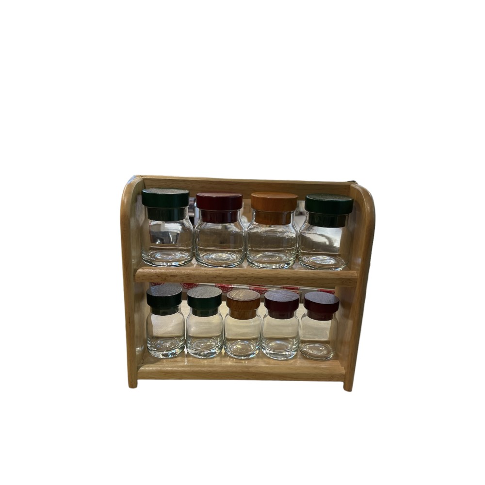 Βάση για μπαχαρικά ξύλινη σε φυσικό χρώμα με γυάλινα χρωματιστά βαζάκια 27x10x25 cm - ιδανική για την κουζίνα σας στο σπίτι ή το εξοχικό σας. Εξοικονομείστε χώρο και οργανώστε την κουζίνα σας, με την νέα αυτή υπέροχη βάση μπαχαρικών που θα σας ικανοποιήσει απόλυτα με την κομψότητα και την ποιότητα της.