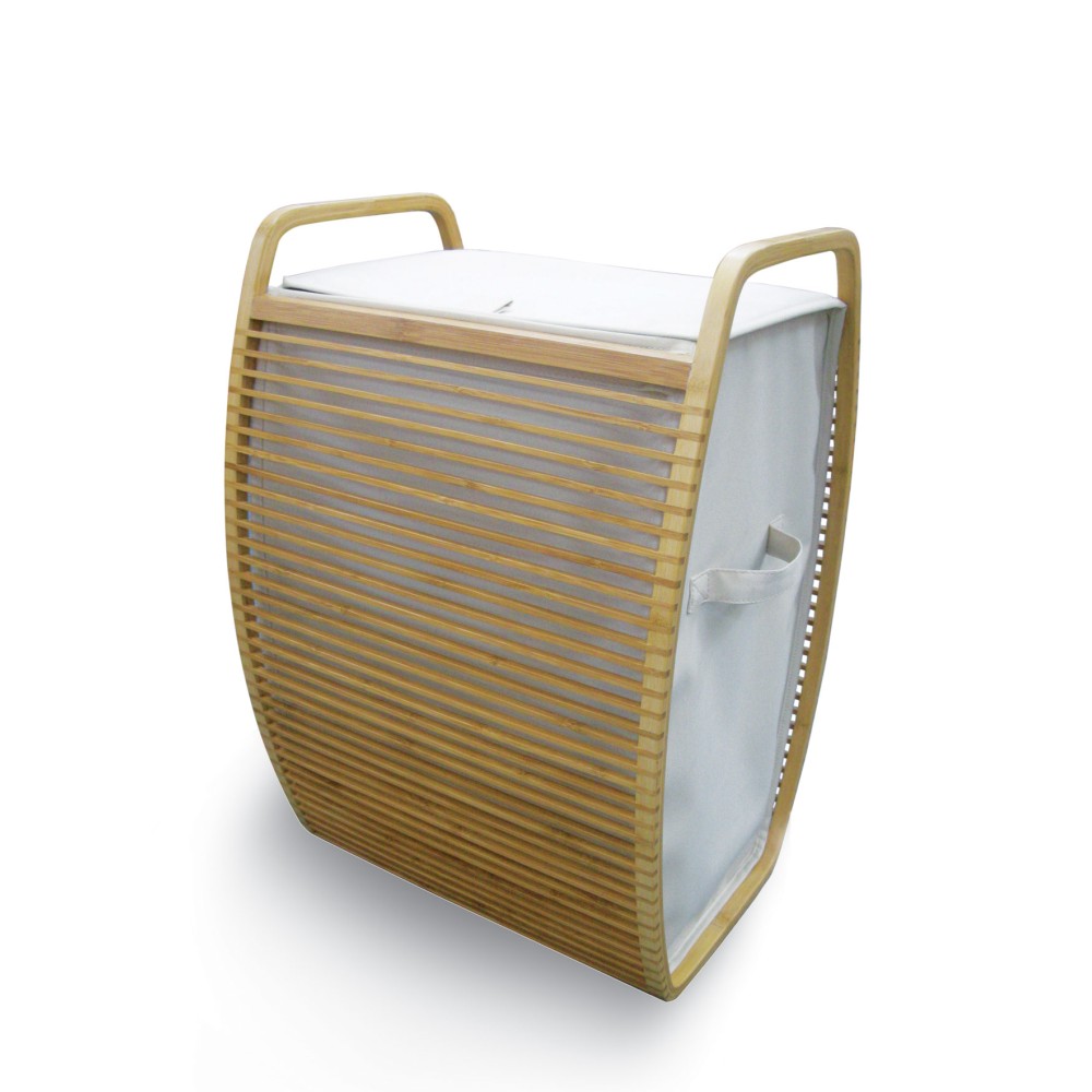 Καλάθι απλύτων bamboo ποιότητας teak με ύφασμα που πλένεται στο πλυντήριο. Ανθεκτικό στην υγρασία και στο νερό, αυτό το καλάθι θα σας ενθουσιάσει για την πρακτικότητα και την καλαισθησία του! Κατάλληλο για κάθε μπάνιο, για τα άπλυτα ή τα πλυμένα ρούχα που θέλετε να αποθηκεύσετε!