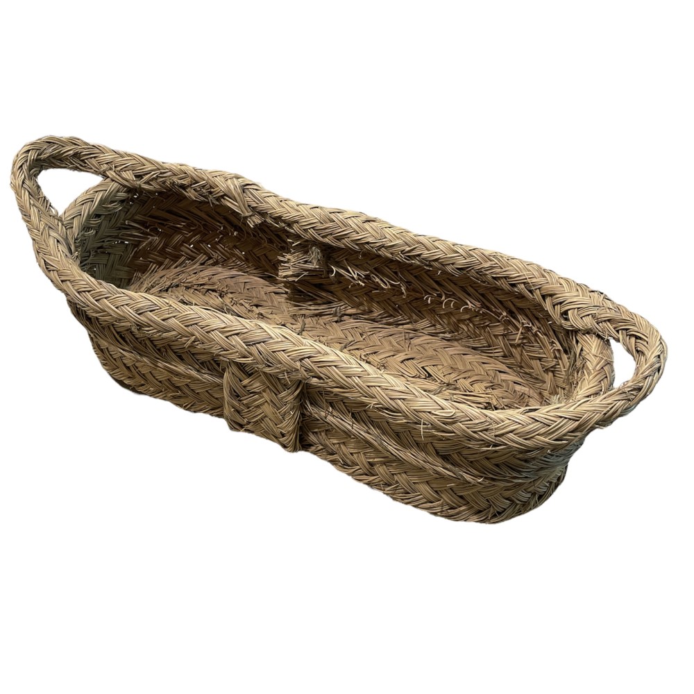 Καλάθι πλεκτό ψάθινο χειροποίητο οβάλ με χεράκια 42x14x14cm