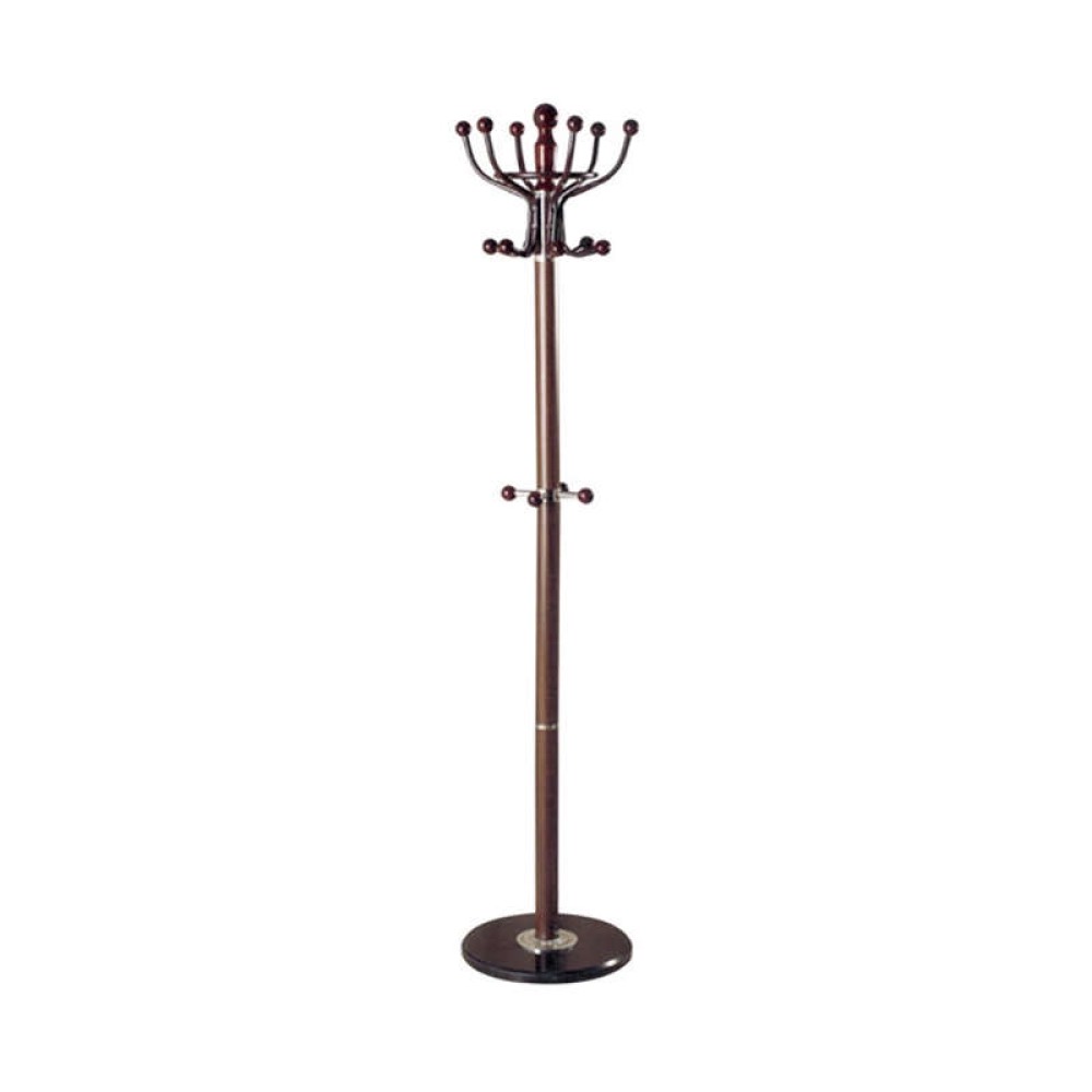 Καλόγερος μεταλλικός, με καφέ επένδυση PVC με πολλαπλές θέσεις για ρούχα με ιστό Φ5εκ. πάχους και μαρμάρινη βάση για απόλυτη αντοχή βάρους.