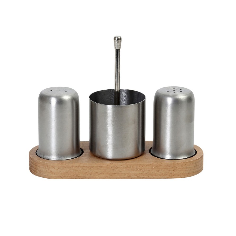 ΣΕΤ ΑΛΑΤΙ/ΠΙΠΕΡΙ/ΟΔΟΝΤΟΓΛΥΦΙΔΕΣ SS 18/10 ΑΣΗΜΙ ΣΕ ΞΥΛ. ΒΑΣΗ 19X7X14,5EK
